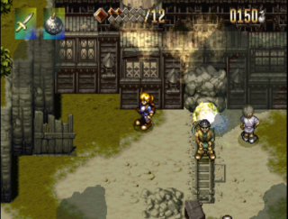 进入墓穴后,首先遇到的就是一个谜题,按照左起4、2、1、3、5调查石碑上的文字,听到一声响后再调查上面房间的石碑,五位鬼魂就会把通向下面的道路打开。向下走,调查两边的石碑,出现怪物,全灭后,踩在闪光处就会出现通路,下个房间从坑内落下,将坑内开关扳至左边开关的向左,右边开关的向右,就可以从上面跳至石板而乘石板上去,上去后跳至女神像处,要快速跳过限时的石板,然后向下走来到4个光球处,按照右、左、下、上的顺序打击就可以开启通往下个房间的门,向右来到下个房间从右上的楼梯下来,在下方的一道门前上下方有2个墓坑,进去踩下机关,门开后得到钥匙,打开过道上方的门,进入后三个机关按照左、右、中的顺序就可以打开左上的门,进入后将石头推进坑内,悬空的石板开始移动,目的是取得木桶做垫脚石,取得木桶后,放在女神像下方,跳上去后和女神像对话后,之前过道下方的传送带会改变位置,这时,可以跳下此房间的深坑,利用石头垫脚,获得左上角宝箱内的黄金鸟,接着杀光坑内史莱姆就会打开门,来到过道的传送带处,顺着左边的传送带来到漂浮的石台上,先不要急于前进,在石台向上时贴着墙进入一个隐藏的密室,调查牌子得到提示并开启右边的门,进入一个有3个光球的房间,按照上、下、中的顺序打击后先向右走,再向左走,再左走,再右走,就能进入拉的房间,这时拉为了看看你的实力,放出了BOSS木乃伊,用刀砍用炸弹炸都行,随机应变就把木乃伊消灭了,向里前进,贤者拉出现了,要求你在恶魔梅尔佐斯用七个纹章解开封印前将其消灭,随后给了三个宝箱(魔法盾、大地之章(上)和命之器),并将他的鸠血之纹章给了阿兰多拉,之后放出传送门送阿兰多拉到了出口,出去后贤者拉的地下墓穴入口处的石门徐徐关闭。
