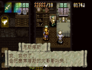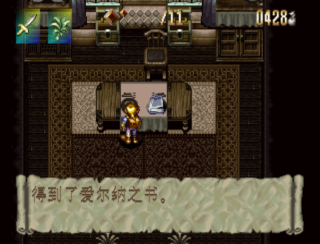 沿左上的梯子回到1楼,开宝箱得到命之器(HP+1),这时可以前往二楼了,从左边上二楼打开门,房间内有2个宝箱,获得后调查桌子上的书本得到“爱尔纳之书”。正要出门,梅尔佐斯又警告了一次主角后消失不见。