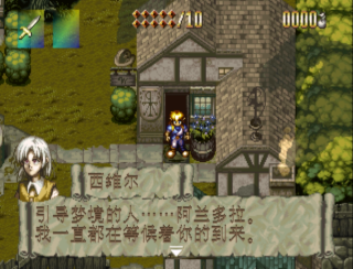 而这里就是伊诺亚村,还有桌子上蓝色的书本可以记录下发生的事情(就是SAVE点)。当走出家门时,一个名叫“西维尔”的女孩会和你说话。