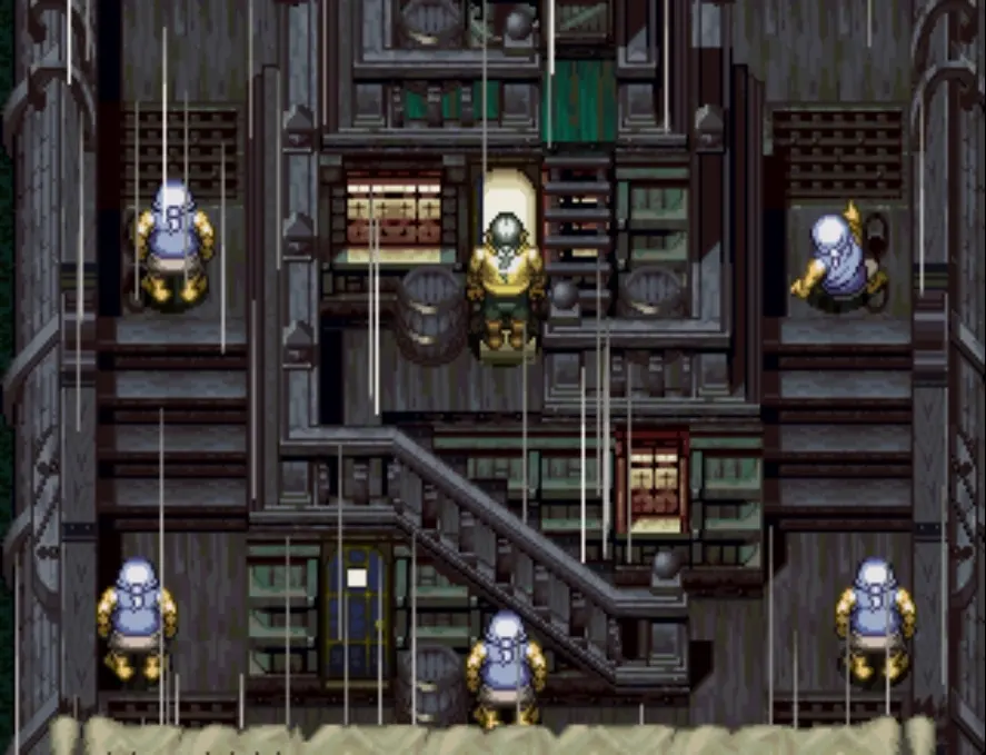 进入梦境后,到(B)得知要按照左、左、右、左的顺序扳动把手才能启动矿车。出去后,和巨石前的奥廉恩交谈,奥廉恩将巨石用炸弹炸开,没想到一群白猿冲了出来,全灭之,掉落宝箱,得到黄金鸟(要迅速消灭白猿,赶快打开宝箱,不然会被剧情带出梦境)。